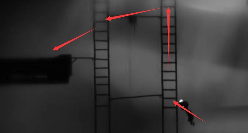 11.从左边照完光线返回后,走到下图位置的梯子,要往上爬到顶。