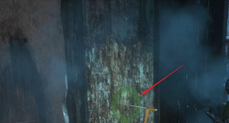 3、当往右边的软木射出攀爬箭矢时,可以看到左边的箭矢会有绿色圈出现,说明这个位置可以射出箭矢。