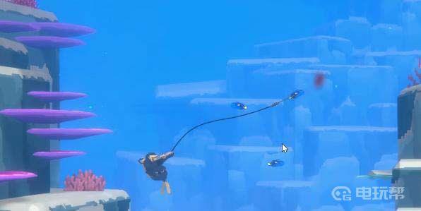 1、首先我们进入海底,然后跟随任务指引来到下图位置,放置捕鱼网。