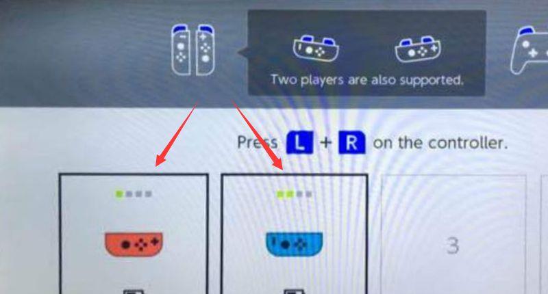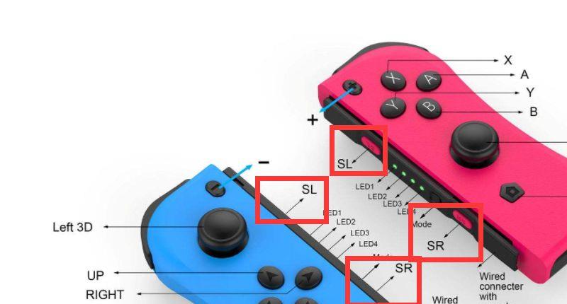 4、按住红色手柄内侧的两个红色按键(SL和SR键),蓝色手柄也是一样操作。