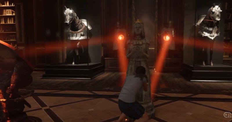 7、接着将会有两道光束射出,我们发现白皇后就困在栅栏后面。