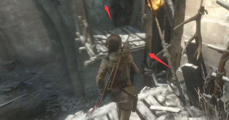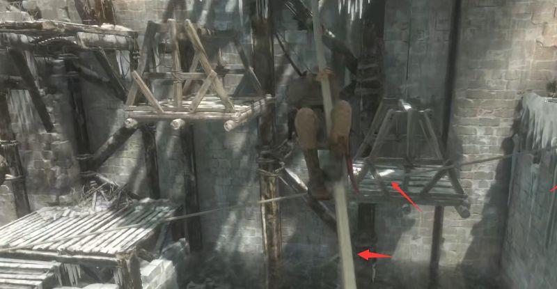 5、用绳索箭矢将这个摇把机关的绳索柱和对面的相连。