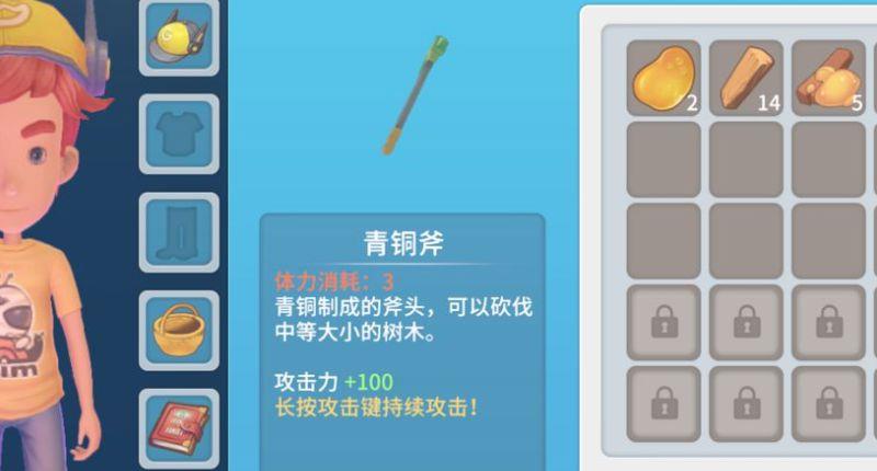 5、之后制作出这边斧头,按紧可以持续砍伐。