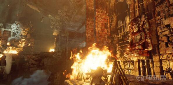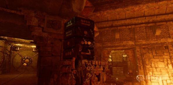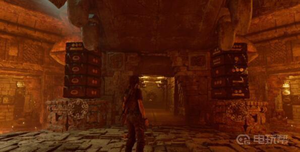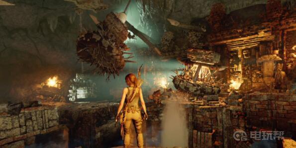 12、从平台右前方跳到中间通道,再跳到对面另一侧平台,往左来到最里面。此时回头,用绳索箭矢瞄准在石摆锤上方的绳索桩,当石摆锤被风吹到最高时射出绳索箭矢,劳拉会拉动石摆锤,使其往右摆动将堵塞在中间通道的杂物撞开。