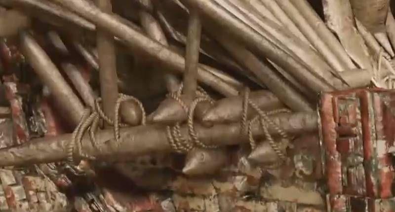 3、跳跃时,使用登山斧钩住中间的石柱。
