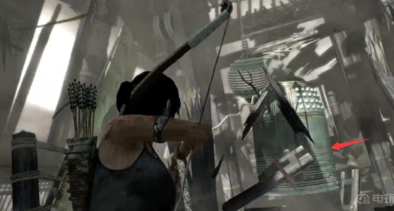 2、其次,我们射绳箭拉动钟摆,然后气流会推动它击碎支撑立柱。