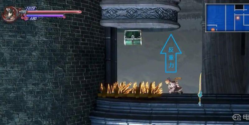 五、反转后掉下去就可以发现一个宝箱,卡在陷阱边边再反重力,就可以获得神盾胸甲,如下图所示。