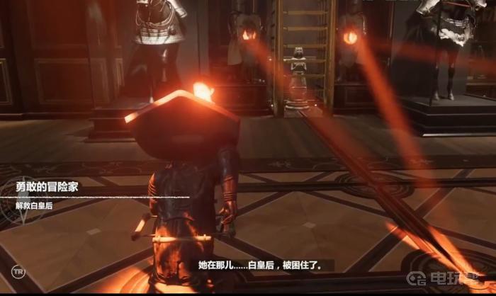 6、回到一楼,把地上的两个骑士棋子(有盾牌的棋子)拉到发光处,白皇后现身!