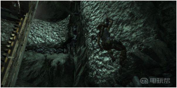 9、最后返回4层,启动电梯控制器后,劳拉要马上向下跳,此时的电梯由3层向4层上升,在接近这个出口时,劳拉需要立即跳出去,同时要勾在岩石上,然后向左移动,就可以落到平台上。