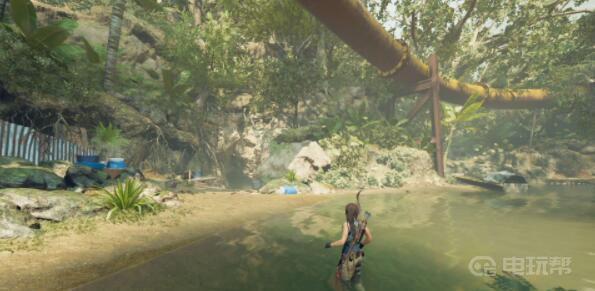 4、在花园处有一个被倒下大树遮蔽的道路,从下方爬进去。