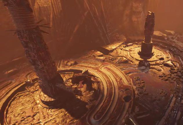 1.古墓丽影暗影转动转盘需要有手柄的协助,首先找到能转动的转盘