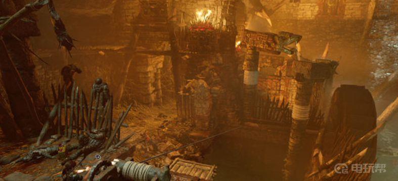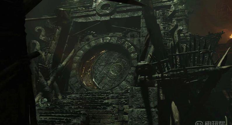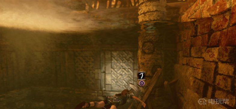 19、回到转盘处再次旋转左侧龙头,让其水流入右侧龙头的水槽内。再用绳索箭矢将转盘和右侧龙头下的转轴相连,旋转转盘让龙头朝右将水引到水车上,将其启动。然后第二扇大门打开,进入剧情。