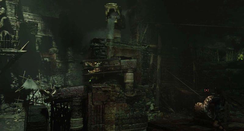 12、在平台上用绳索箭矢将转盘和对面龙头下的转轴相连,用转盘让龙头朝右。