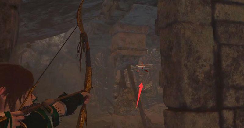 17、用绳索箭矢将右上方那个拉环和水车转轴相连,此次主要是为了引出两个变异人弓箭手。