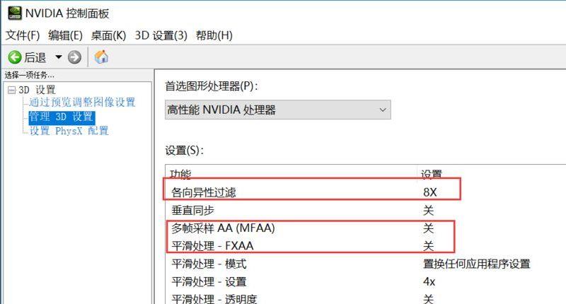 4、各项异性过滤,我们需要根据显卡来选择倍数,入门级的我们选择4X,中端的显卡选择8X,高端的选择16X,同时MFAA和FXAA我们使用推荐设置关闭,如下图所示