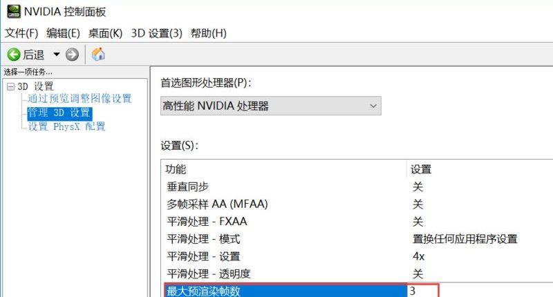 6、接下来是最大预渲染帧数选3,可以显著提高动作流畅性,其它的纹理过滤可以参考下图设置,如下图所示