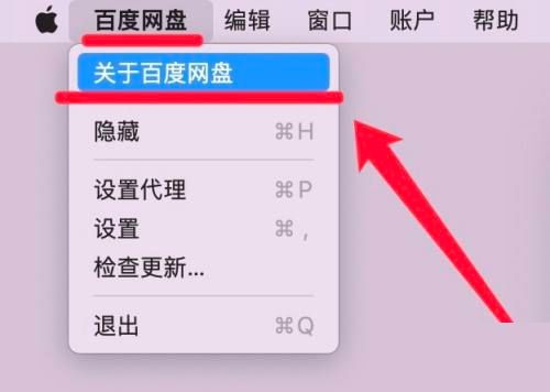 第二步:点击上方菜单栏中【百度网盘---关于百度网盘】(如图所示)。