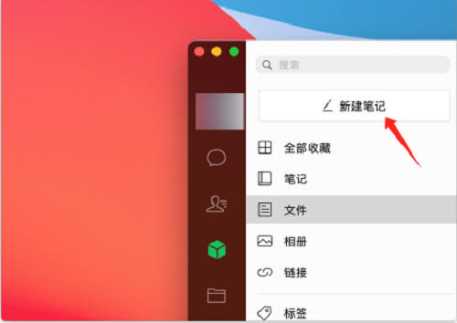 第三步:切换到收藏功能后,在右侧面板就可以看到“新建笔记”的入口。