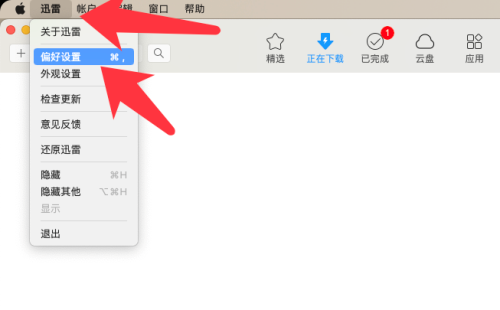 第二步:接着我们点击左上角迅雷,弹出列表点击【偏好设置】。