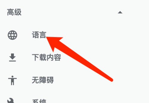 第二步:在高级菜单中,点击语言。