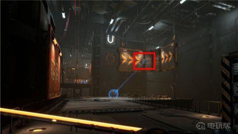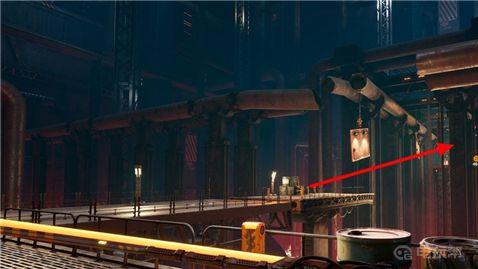 13、来到后侧的高架上与操控控制台,出现一个钩索点后继续向前。