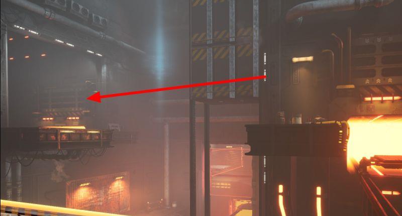 20、通过墙壁到达对面后乘坐上升平台,再通过墙壁来到当前位置的上方平台,以此反复。继续向前进入电梯间,本关卡结束。