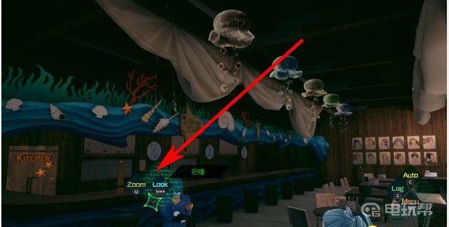 如下图箭头所指,调查警员身后的酒吧柜台,深入调查尸体位置。