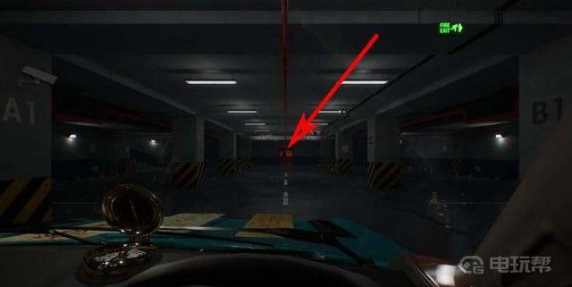 3、原路返回触发女鬼追你的剧情,往回跑的时候,和如下图箭头所指的卷帘门互动,进去,不要放松警惕,因为女鬼就在身后!