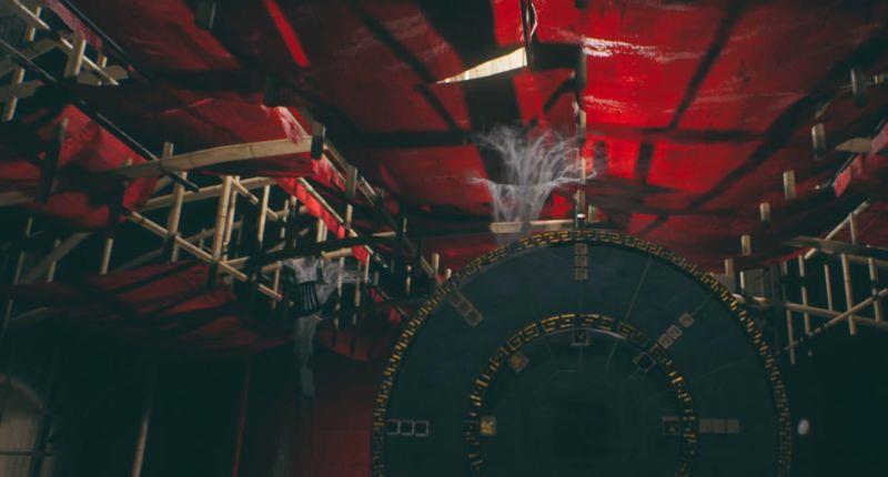 1、先接电话,得知这里有隐藏的门(就在电话旁边)门上有太极机关,需要找到三个配件才行。首先,在大厅钢琴旁边可以找到二楼钥匙,在舞台旁边的柜子里面可以找到第一个配件。使用钥匙上楼,尽头有个门,可以通过猫眼观看房间内的脸谱,通过数各种颜色的脸谱数量来解谜。谜底就是6253。不过即使设密码输对了,门还是不会开,需要再次观察猫眼。突然,一张恶鬼的脸出现在眼前,往回跑。