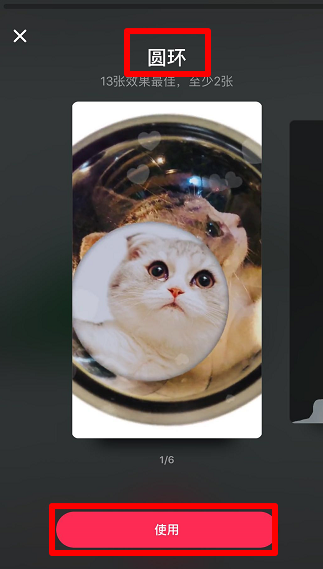 目前第一个影集就是圆环了,点击“使用”。
