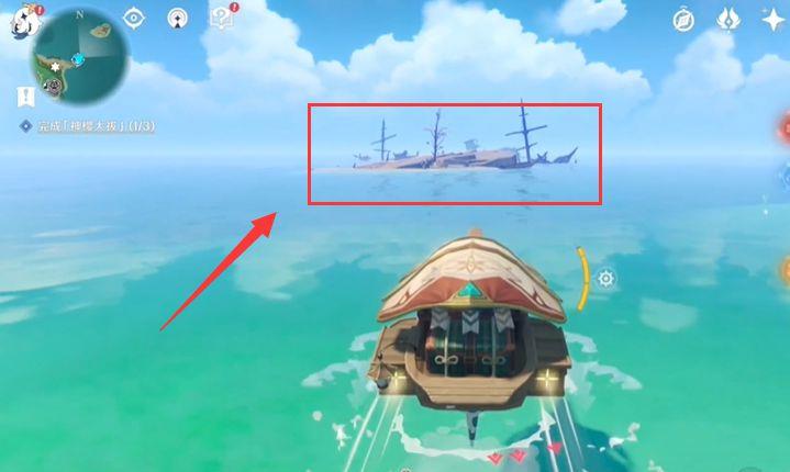 4.接着来到海边召唤浪船,使用浪船前往箭头指向的小岛那里