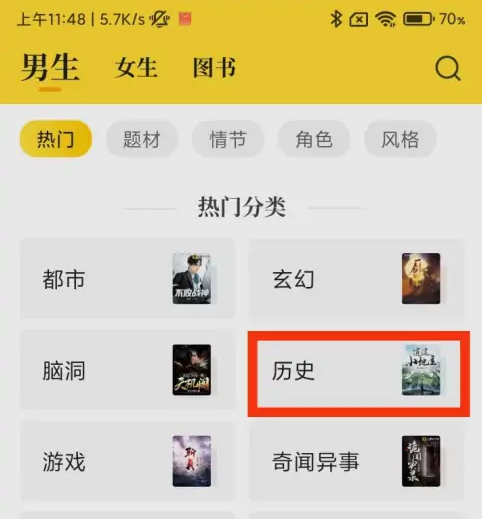 这样就可以看到七猫免费小说的历史小说了