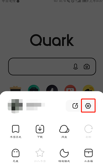 2.在我的夸克页面中,点击设置图标进入浏览器设置页面。