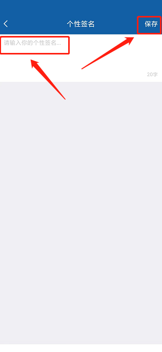 4、最后进入个性签名窗口,输入个性签名内容,点击【保存】。