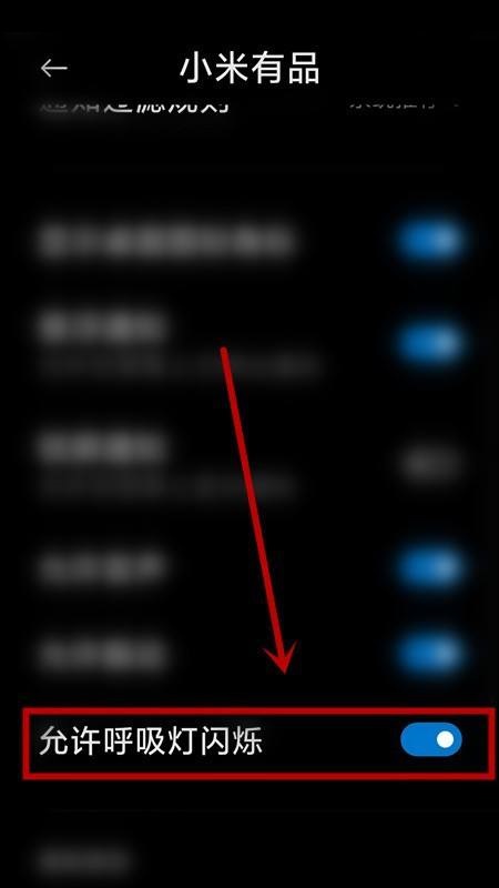 5、在【小米优品】页面,上滑屏幕,找到并点击【允许呼吸灯闪烁】选项。