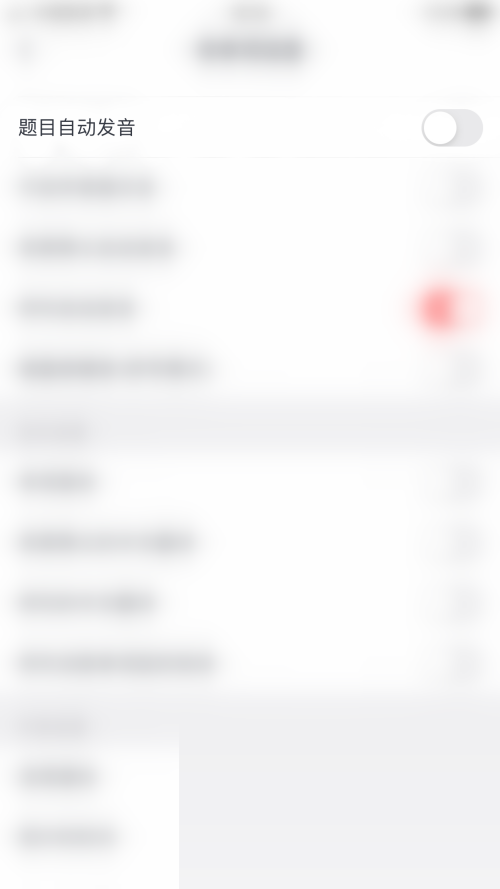 5、最后“题目自动发音”后面的圆点变为红色即表示拓词开启题目自动发音成功。