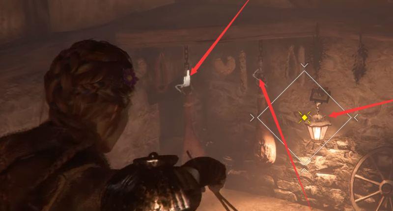 10、医生让卢卡斯带领姐弟两个到阴影古堡,但是先要谷仓里做点火器抵御鼠群。先在仓库的二层位置打落悬挂在梁上的火腿和挂灯,吸引鼠群。