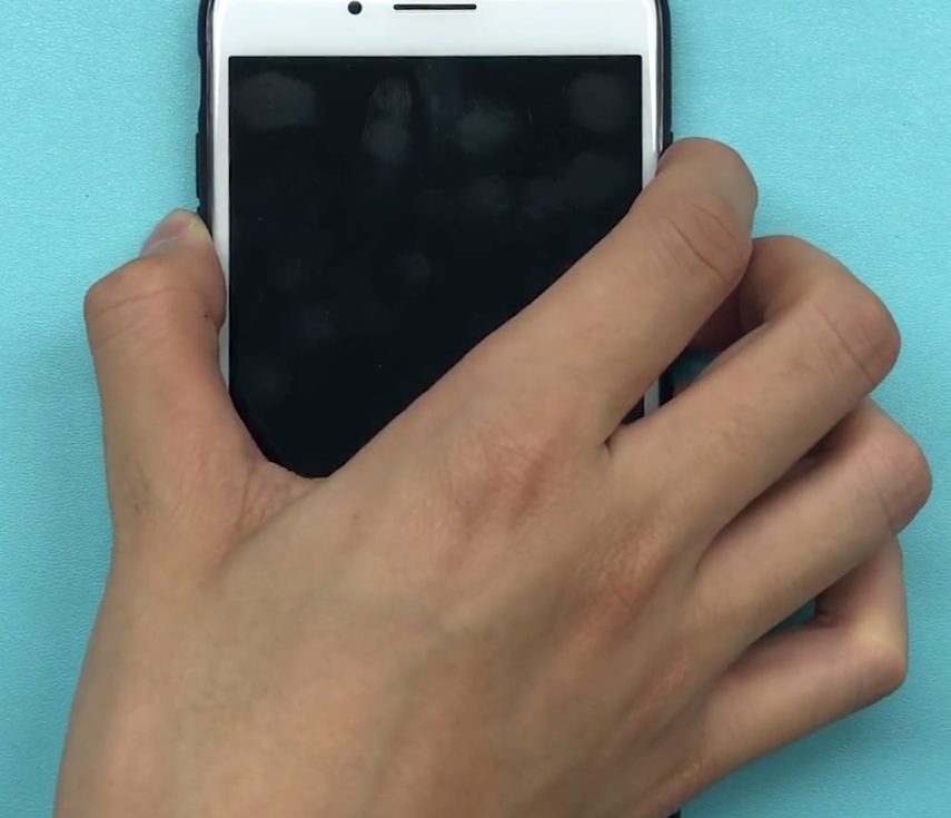 2、然后手机屏幕会黑屏,继续按住,