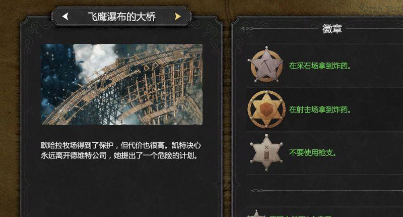 拿炸药就不说了,尽量用凯特拿,加上伪装方便操作。不用枪,长袍怪尽量躲过去,也可以用捆好的敌人吸引他查看,然后从高处抛尸砸晕他。炸桥杀死5个人可以一开始就打晕他们放桥中间,最后炸的时候就能达成。