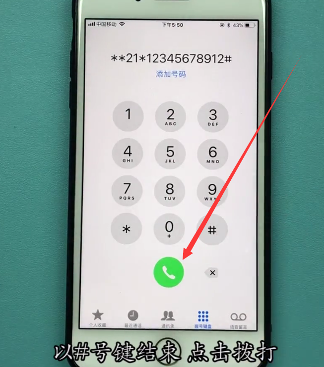 3、然后我们只要拨号输入“**21*+需要转移的电话号码+#”,点击拨打,