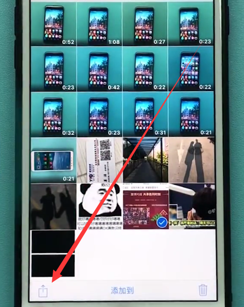 3、勾选需要隐藏的照片,点击左下角的分享图标,