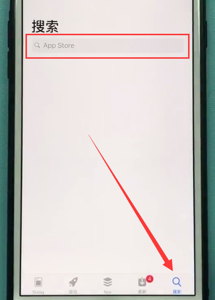 2、点击屏幕下方的【搜索】,在输入框输入想要下载的软件,