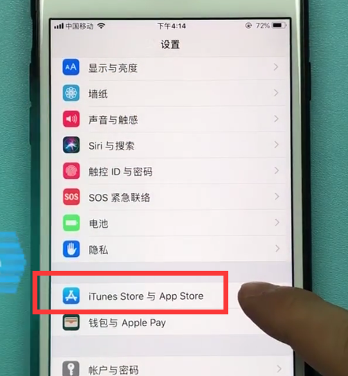 2、下拉找到并点击打开【iTunes Store与App Store】