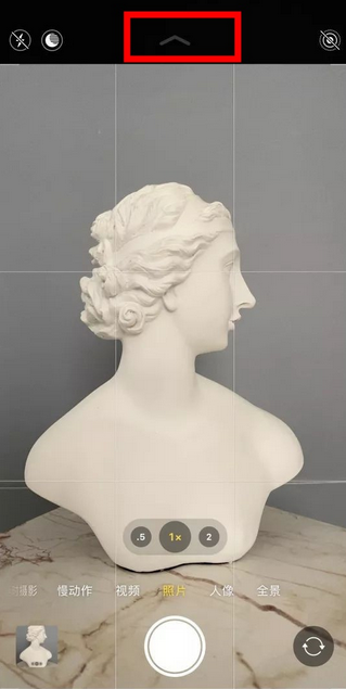 1、打开桌面上的相机app,点击上方的箭头图标。