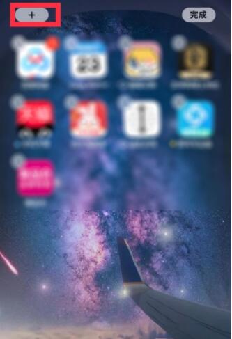 1、长按桌面空白处,点击右上角的“+”。