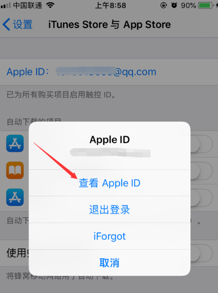 4.在弹出的弹窗中点击查看自己的Apple ID