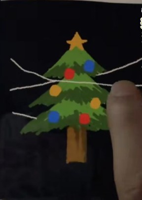 2.再用绿色画出圣诞树的形状,绿色12.5,深绿12.7,土黄的树干用9.7,褐色9.8。黄色9.4用来画树顶上的星星,和树上的装饰。