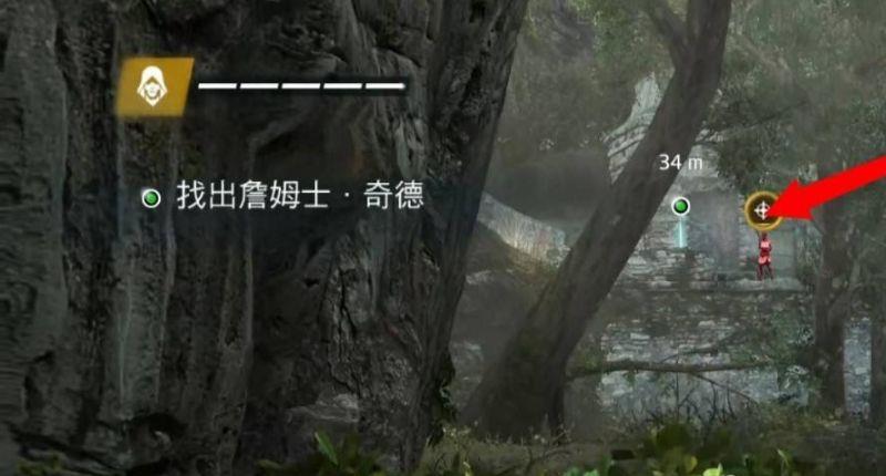 5、紧接着,要解决悬崖对面的守卫,等他警戒值最低时通过中间的树枝跳过去击晕他