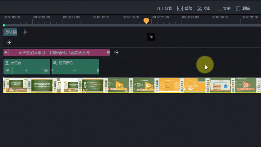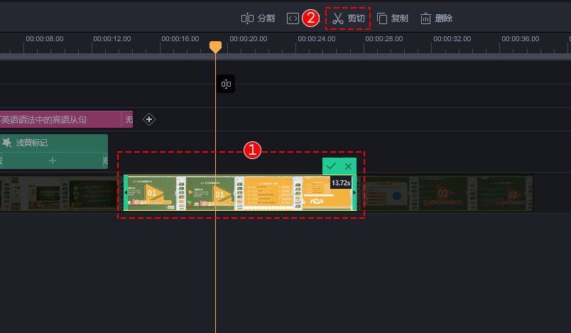 直接剪切视频片段,可以截取视频的某部分进行剪切,也可以直接选中整个视频片段进行剪切