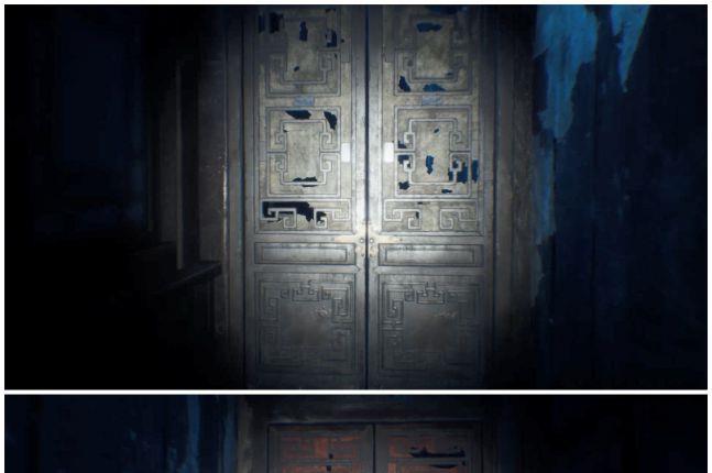 13、注意观察每个门上的窗纸,有三种颜色,分别为:灰、红、蓝。按照“灰-灰-红-蓝-蓝-红”的顺序开门,就能通过第一关。